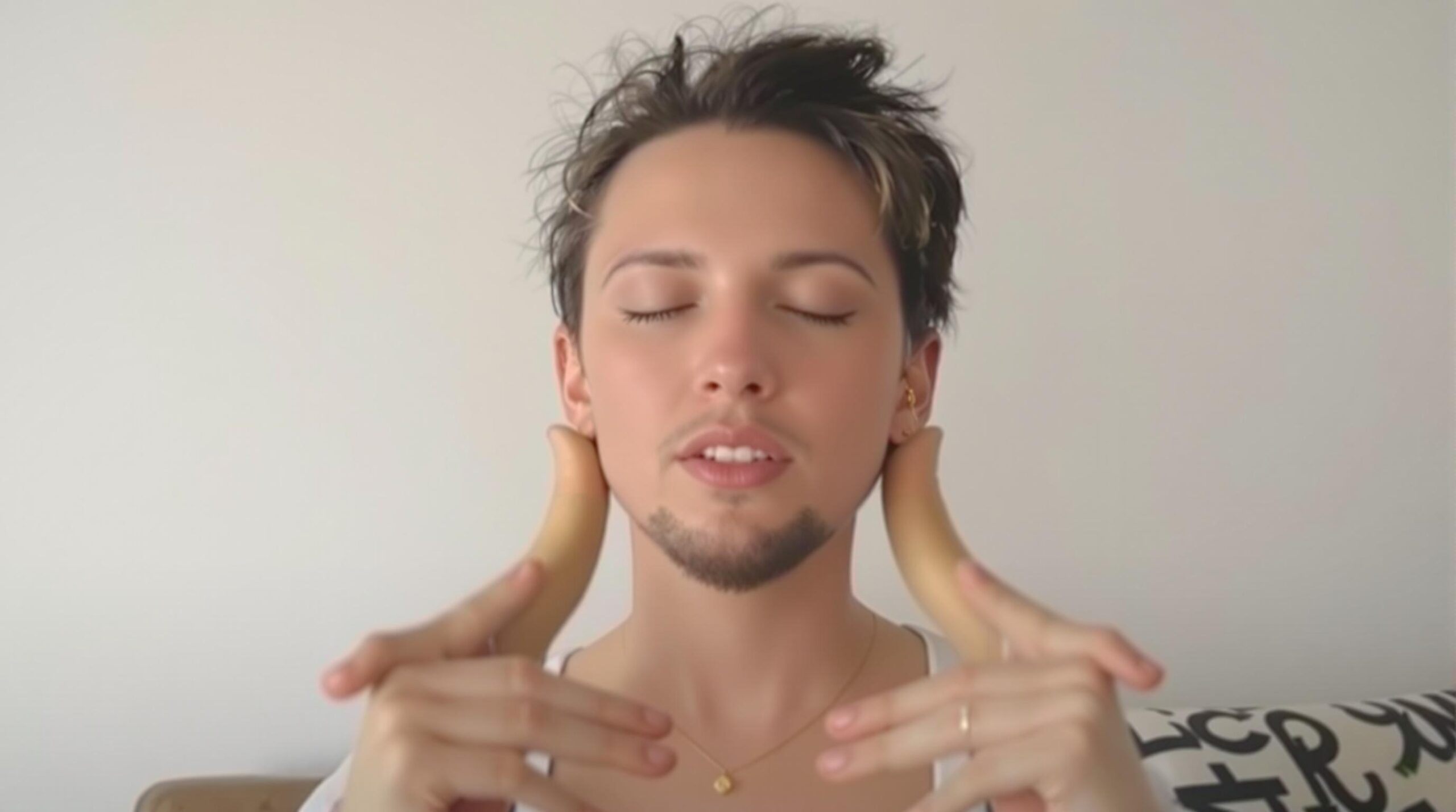 1. Usiądź wygodnie z wyprostowanym kręgosłupem i zamknij oczy.